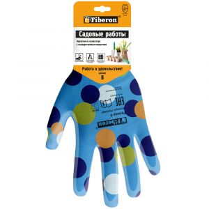 Quantity in original packing: 1; Quantity per package: 1; Material: Latex; Trademark: Komfi; Country of manufacture: China; Availability in stock: 79 Fiberon gardening gloves are suitable for jobs that require high tactile sensitivity of the fingers: working with seedlings, working with garden tools, landscaping. Polyurethane coating gives the effect of "stickiness", eliminating the slippage of objects.